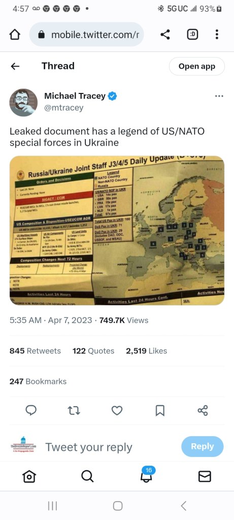 The “word” is that the leaker is supposedly some low level member of the Air Force Guard that led some…….online gamer group and presented said documents among its members.