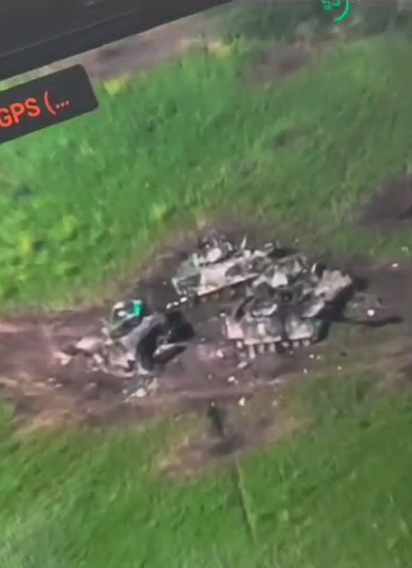 Below, a Lancet kamikaze drone retires a Ukrainian T-64 tank. Watch till the end! What is this music… Rammstein? I love it. Location unspecified.
