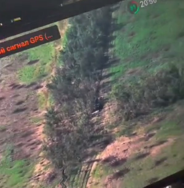 Below, REALLY COOL. A Ukrainian infiltration team gets hit with a tank or other direct-fire cannon round, which you can ACTUALLY SEE (!!!), coming from the left. Location, unspecified.