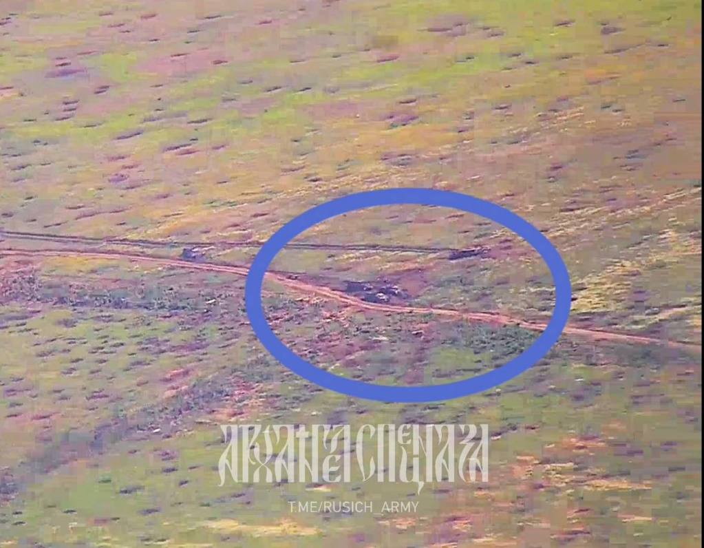 Below, GLOBOHOMO armor wasted in a TANK BATTLE (yes, these still happen.) In the first photo, inside the circle, two German Leopard tanks and what may be a U.S. MaxxPro MRAP. In the second photo, a U.S. M2 Bradley. Near Rabotino, Zaporozhie.